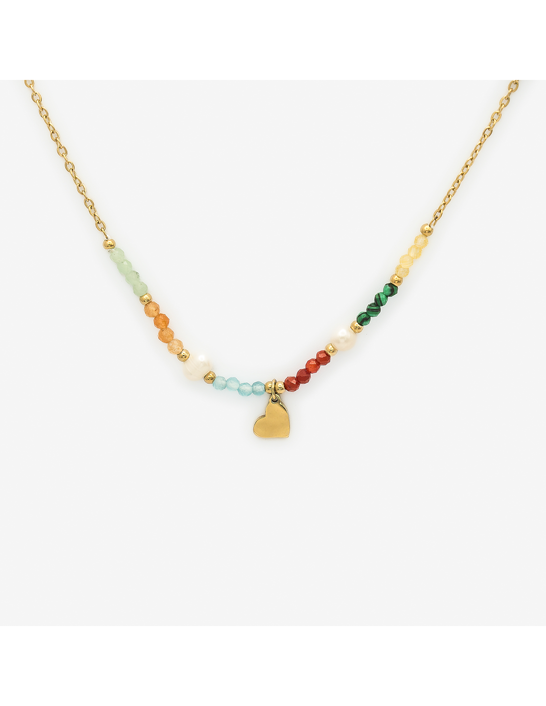 Collar Corazón y perlas en color oro y plata.