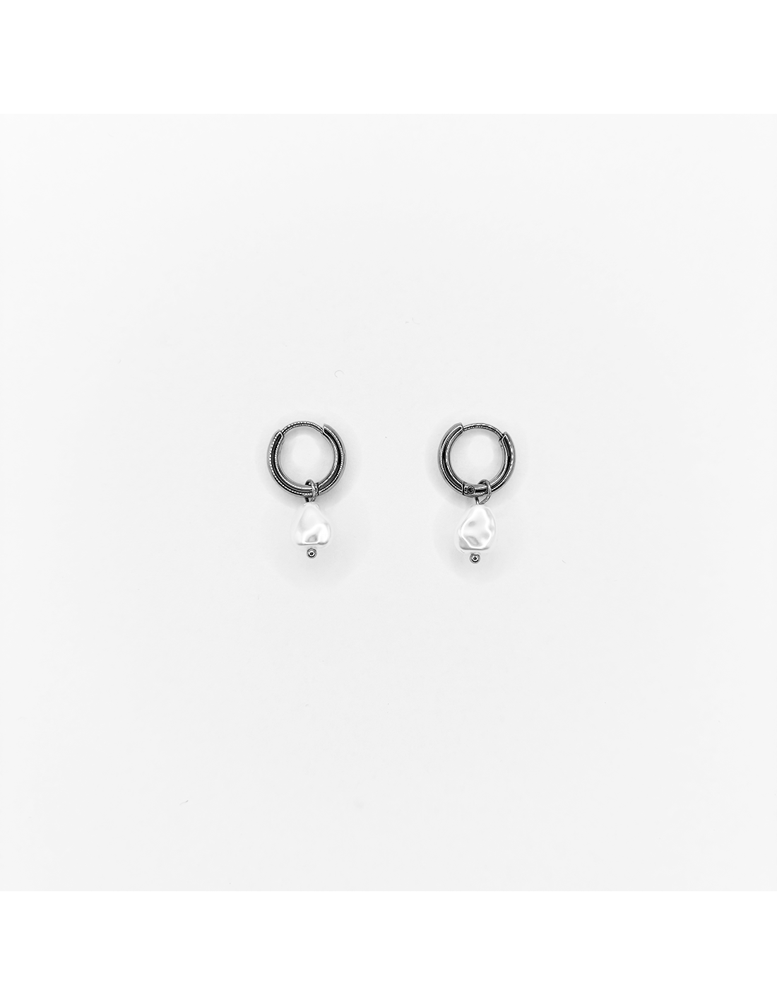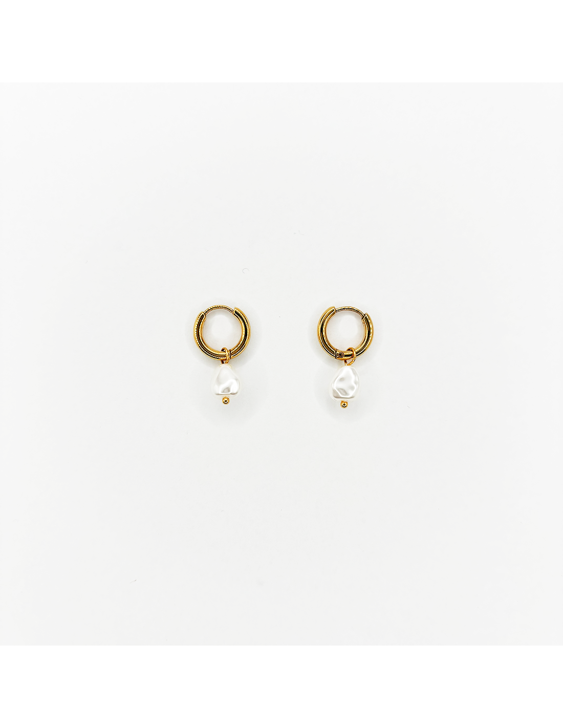 Pendientes de aro pequeños con perla colgante de forma orgánica, disponibles en acabado dorado y plateado. Un diseño delicado y femenino que aporta movimiento y luminosidad, ideal tanto para el día a día como para ocasiones especiales.