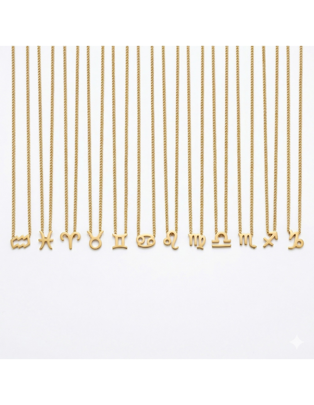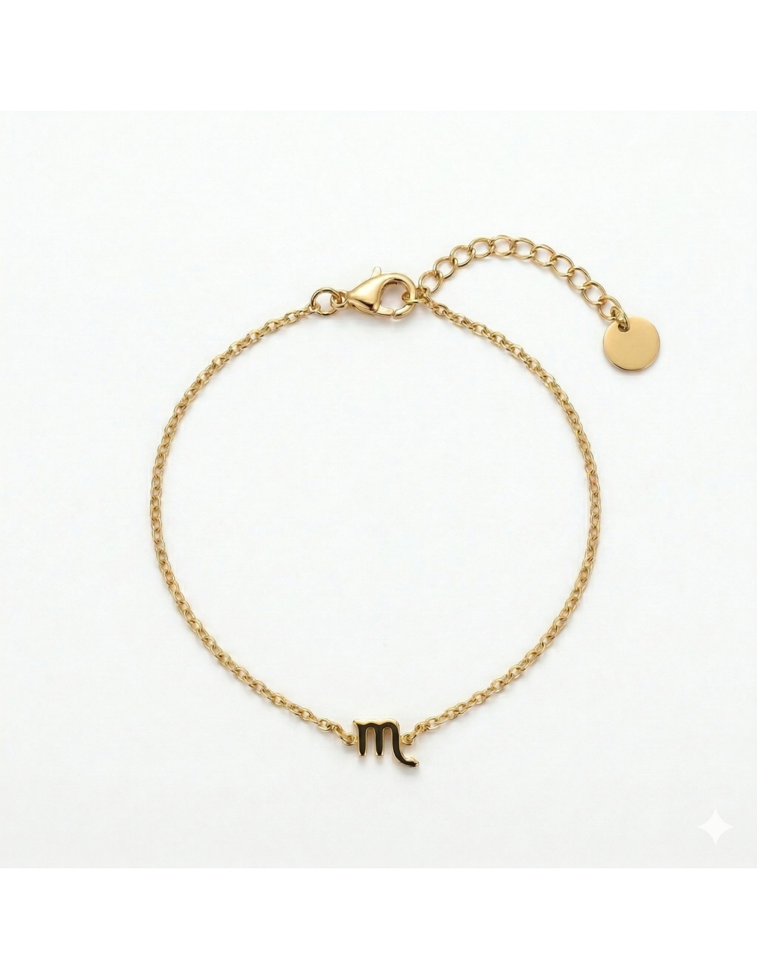 Pulsera de signo zodiacal con diseño minimalista. Disponible en acabado dorado y plateado.